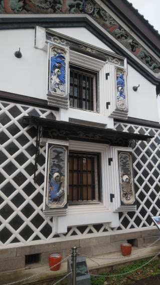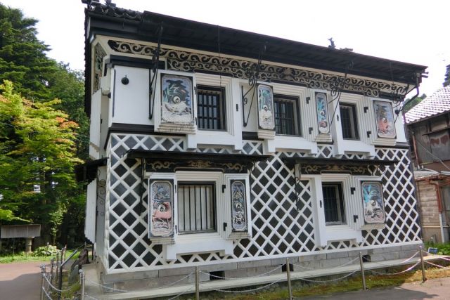長岡の傑物吉沢仁太郎の屋敷の蔵。東洋のフレスコ画ともよばれる“鏝絵”で飾られたこの蔵には、十二支をはじめとする17種の動物・霊獣・九種の植物が極彩色に描かれている。